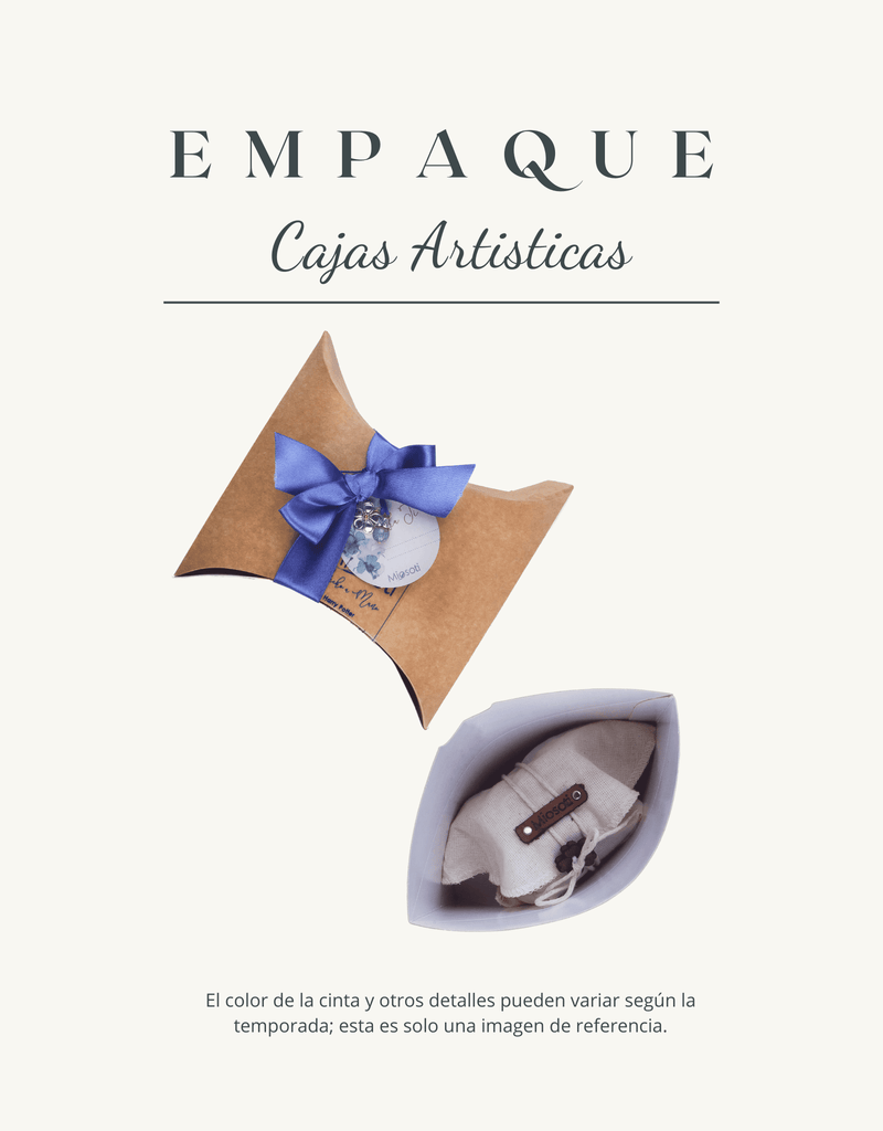 Embalaje: Cartón corrugado sellado con lacre decorativo 7cm x 7cm x 10cm